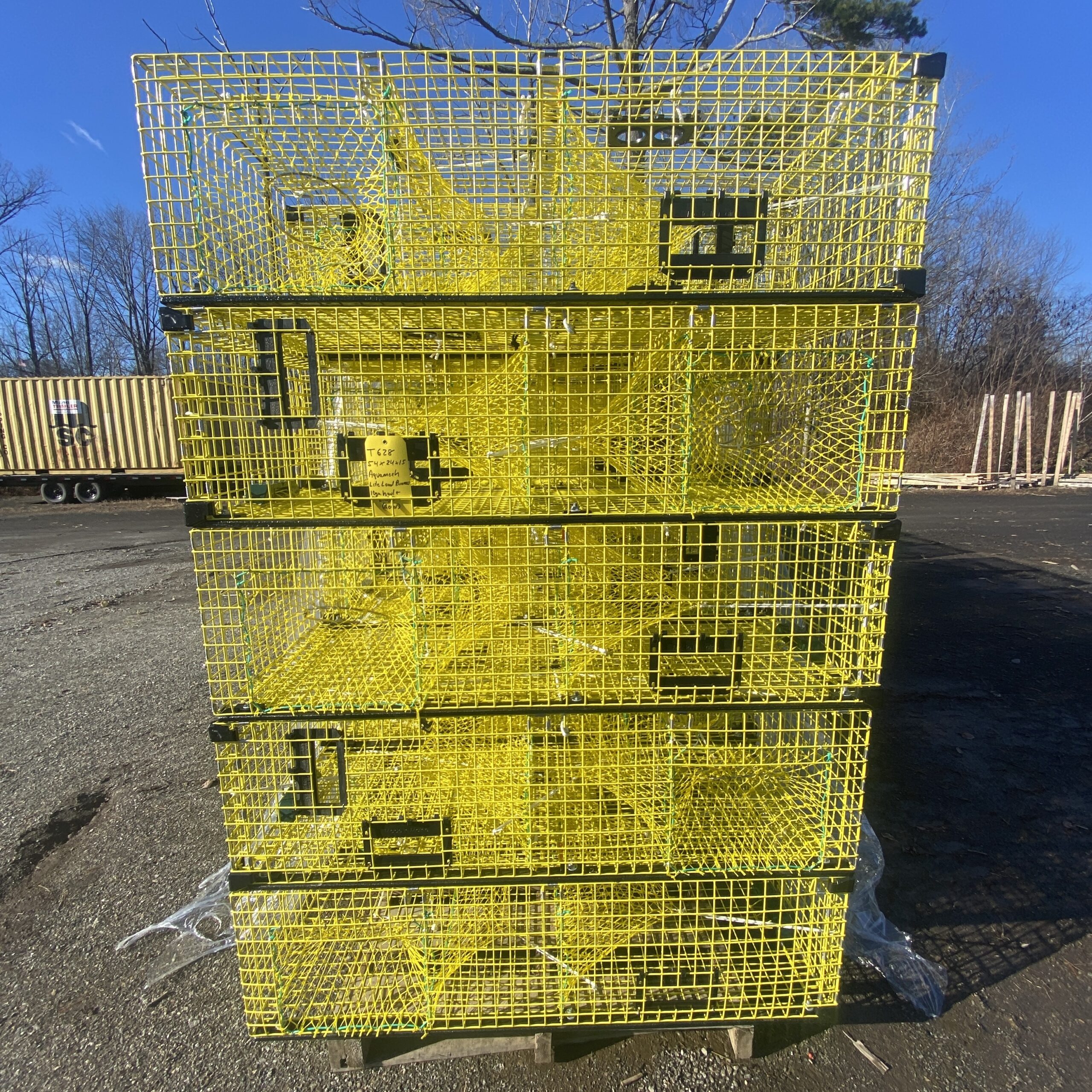 50 – 54″x24″x15″  Yellow Aquamesh wire. 10ga boxed haul end and 10ga bridges. Hoop Sides with Hake Mouth Center and Rear heads. Lite Load runners and 1 Ergo block. Right Hand Parlor Haul.
