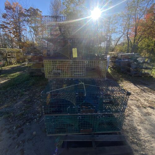 38 – 48″x22.5″x15″ Green Aquamesh wire. 10GA haul end and bridges. Hoop sides, Hake Mouth center and rear. Three oak runners with four Vblocks. LEFT HAND HAUL PARLOR!!!