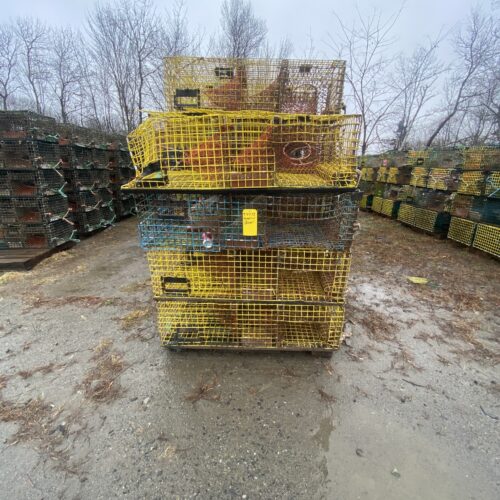 50 – 54″x24″x15″  Yellow Aquamesh wire. 10ga boxed haul end and 10ga bridges. Hoop Sides with Hake Mouth Center and Rear heads. Lite Load runners and 1 Ergo block. Right Hand Parlor Haul.