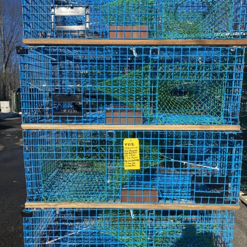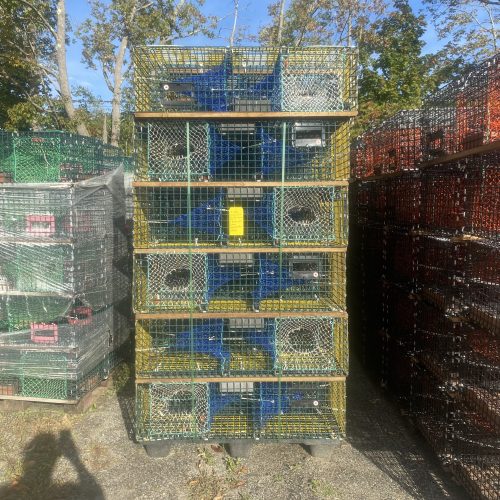 50 – 54″x24″x15″  Yellow Aquamesh wire. 10ga boxed haul end and 10ga bridges. Hoop Sides with Hake Mouth Center and Rear heads. Lite Load runners and 1 Ergo block. Right Hand Parlor Haul.